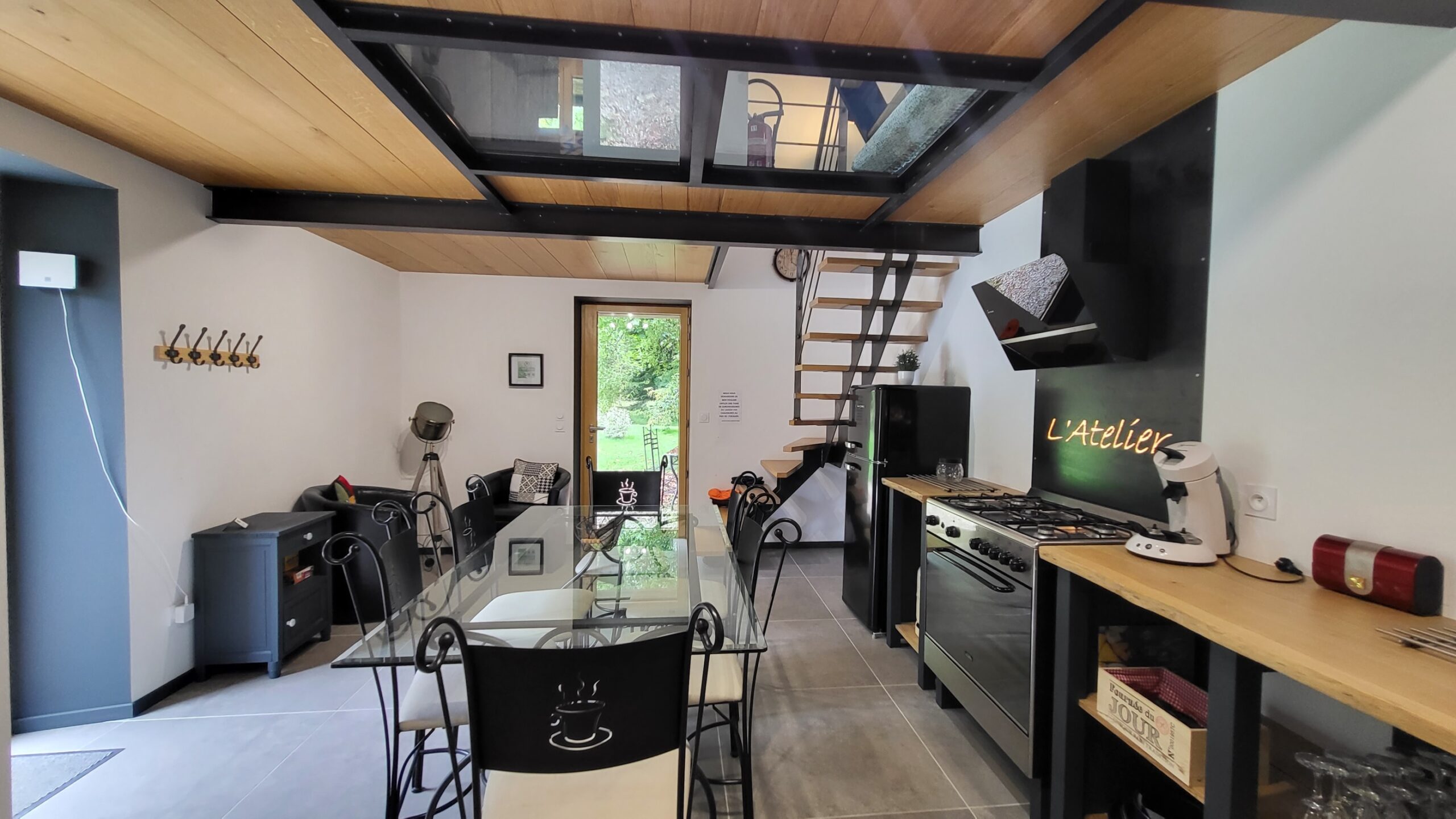 Bienvenue à L’Atelier, un véritable cocon de 50 m², parfait pour une escapade en duo ou en petit comité. Ancienne maison de contremaître, ce gîte a été entièrement rénové avec passion du sol au plafond, offrant une atmosphère chaleureuse et unique.